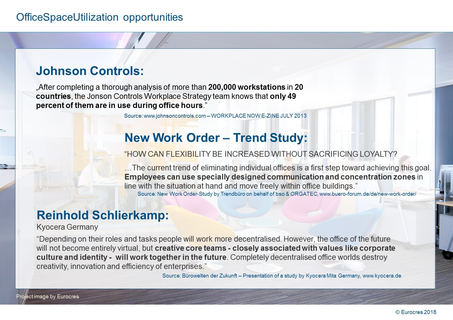 Benchmarks > Wissensportal > WorkPlace Flash: Office Space Utilization opportunities +++ Synergetic merge of work processes, provision of space and employee needs +++ Enhance cultural change in response to changing work place requirements +++ Up to 70% savings of floor space DOWNLOAD DOWNLOAD WorkPlace Flash: Office Space Utilization opportunities2018-04-182018-12-02https://eurocres.expertdeal.nl/wp-content/uploads/logo-3-weiss-np01-140905_01.pngEurocreshttps://eurocres.expertdeal.nl/wp-content/uploads/eurocresworkplaceflash011-presentationslide-1024x768.jpg200px200px