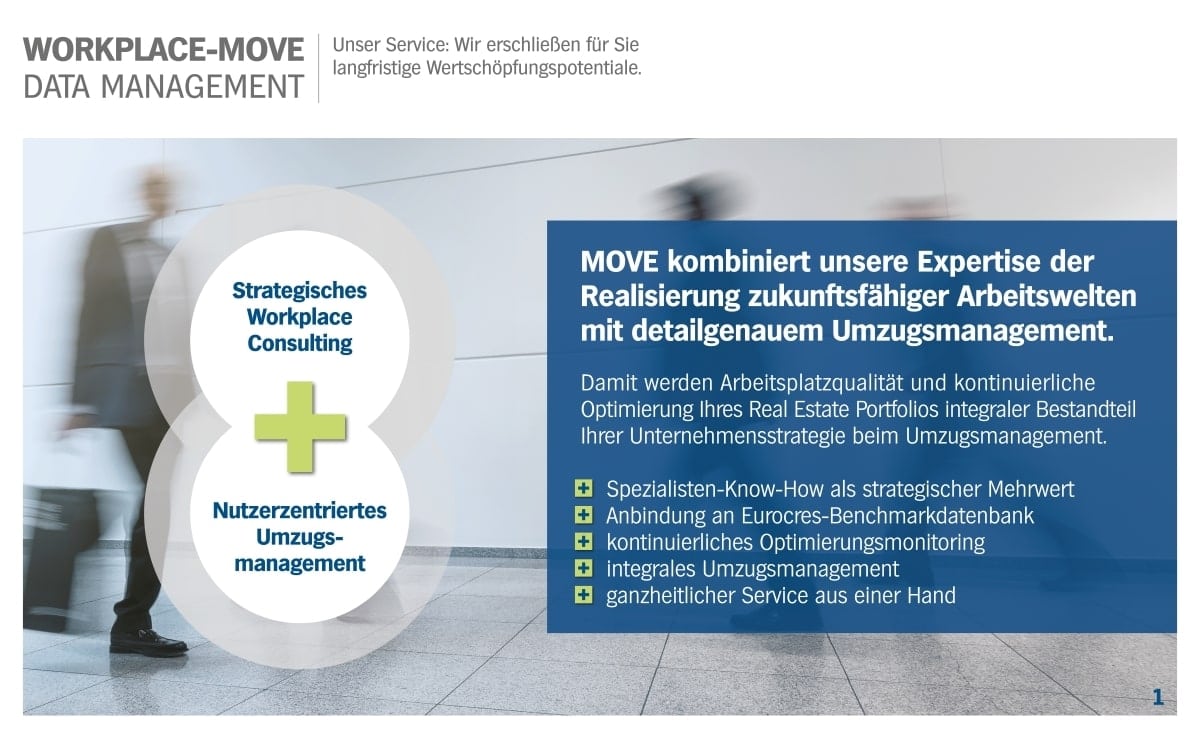 Erschließen Sie neue Wertschöpfungspotenziale und Synergien aus der Überlagerung von strategischem WorkPlace Know-How und nutzerzentriertem Umzugsmanagement.