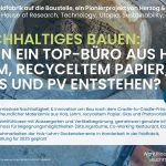 - Zirkuläres Bauen: komplett demontierbares, energieneutrales Gebäude aus Holz, Alu & Glas, komplette Tragstruktur bestehend aus 5 Standardelementen verschraubt mit 165.000 Bolzen, Fokus auf recycelte Materialien