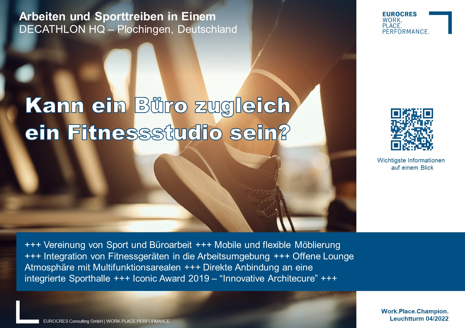 +++ Vereinung von Sport und Büroarbeit +++ Mobile und flexible Möblierung +++ Integration von Fitnessgeräten in die Arbeitsumgebung +++ Offene Lounge Atmosphäre mit Multifunktionsarealen +++ Direkte Anbindung an eine integrierte Sporthalle +++ Iconic Award 2019 – “Innovative Architecure” +++