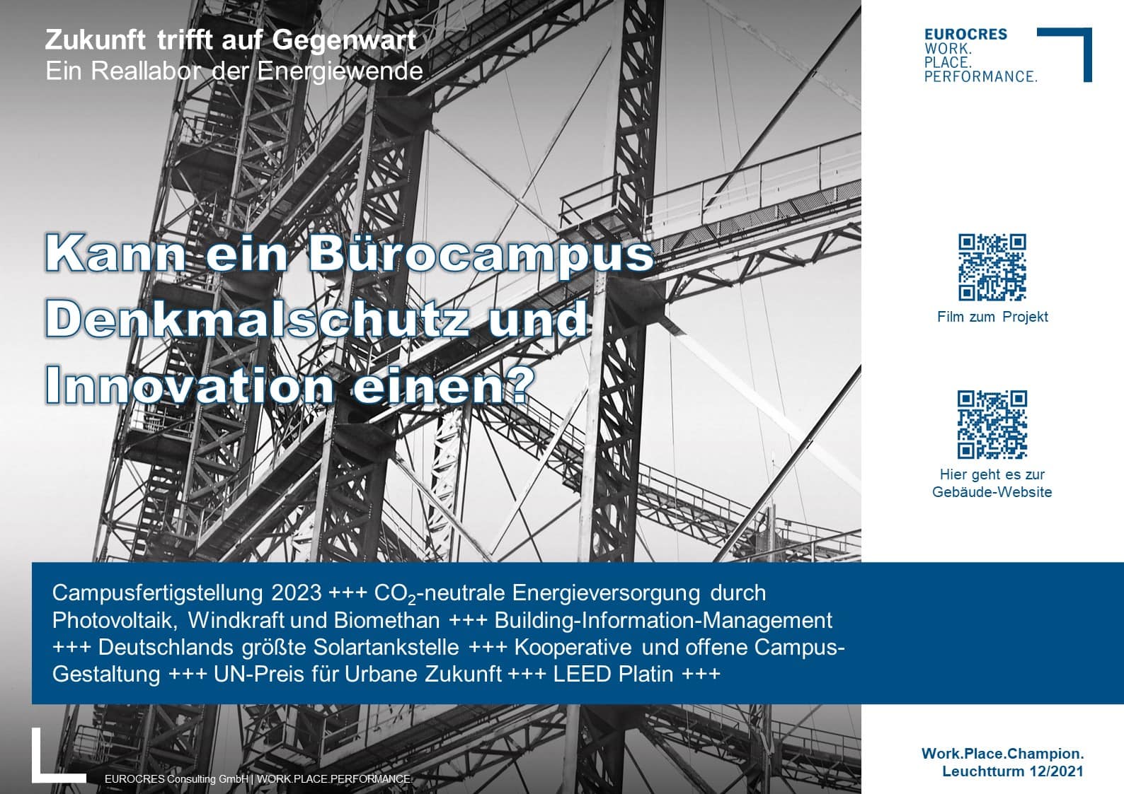 Passend zum Abschluss des Jahres hat unser aktueller Leuchtturm gleich mehrere Besonderheiten zu bieten: Zum einen stellen wir dieses Mal keinen einzelnen Bau vor, sondern ein ganzes Gelände – nämlich den EUREF-Campus in Berlin-Schöneberg. Zum anderen vereint unser heutiges Vorbild zwei in Deutschland als unvereinbar geltende Aspekte: Denkmalschutz und Innovation. Obendrein erfüllt das Projekt – das im Jahr 2023 finalisiert wird und bereits 150 Unternehmen und Institutionen beherbergt – seit 2014 die Klimaziele Deutschlands für das Jahr 2050. Verantwortlich für diese herausragende Bilanz werden ein intelligentes Energielastmanagement und die Tatsache sein, dass alle Gebäude untereinander vernetzt sind.