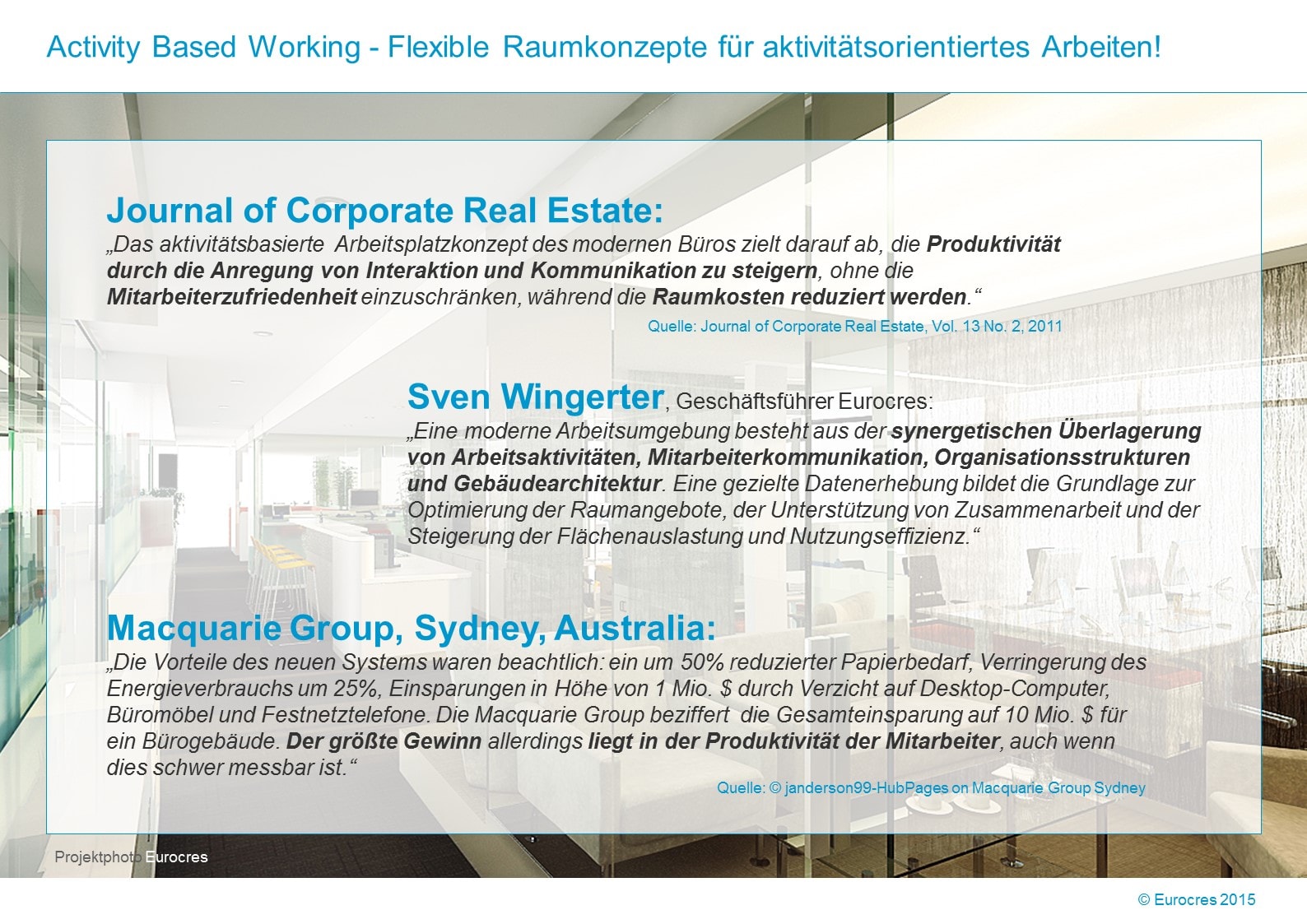 +++ Offene und geschlossene Bereiche +++ Förderung projektbezogener Einzel- oder Teamarbeit +++ Kommunikative, attraktive Arbeitsumgebung +++ nutzen statt besitzen +++ ABW als Reaktion auf kulturelle und technologische Entwicklungen +++