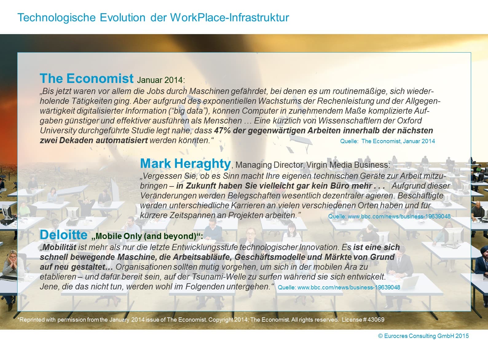 +++ Betriebsmittel Büro wird sich komplett neu erfinden +++ Arbeit wird immer mobiler +++ Wandel von klassischer Bürowelt zu einem differenzierten Angebot an Arbeitsmöglichkeiten +++ Büroflächen als Brain-Connector und Identifikationsraum +++